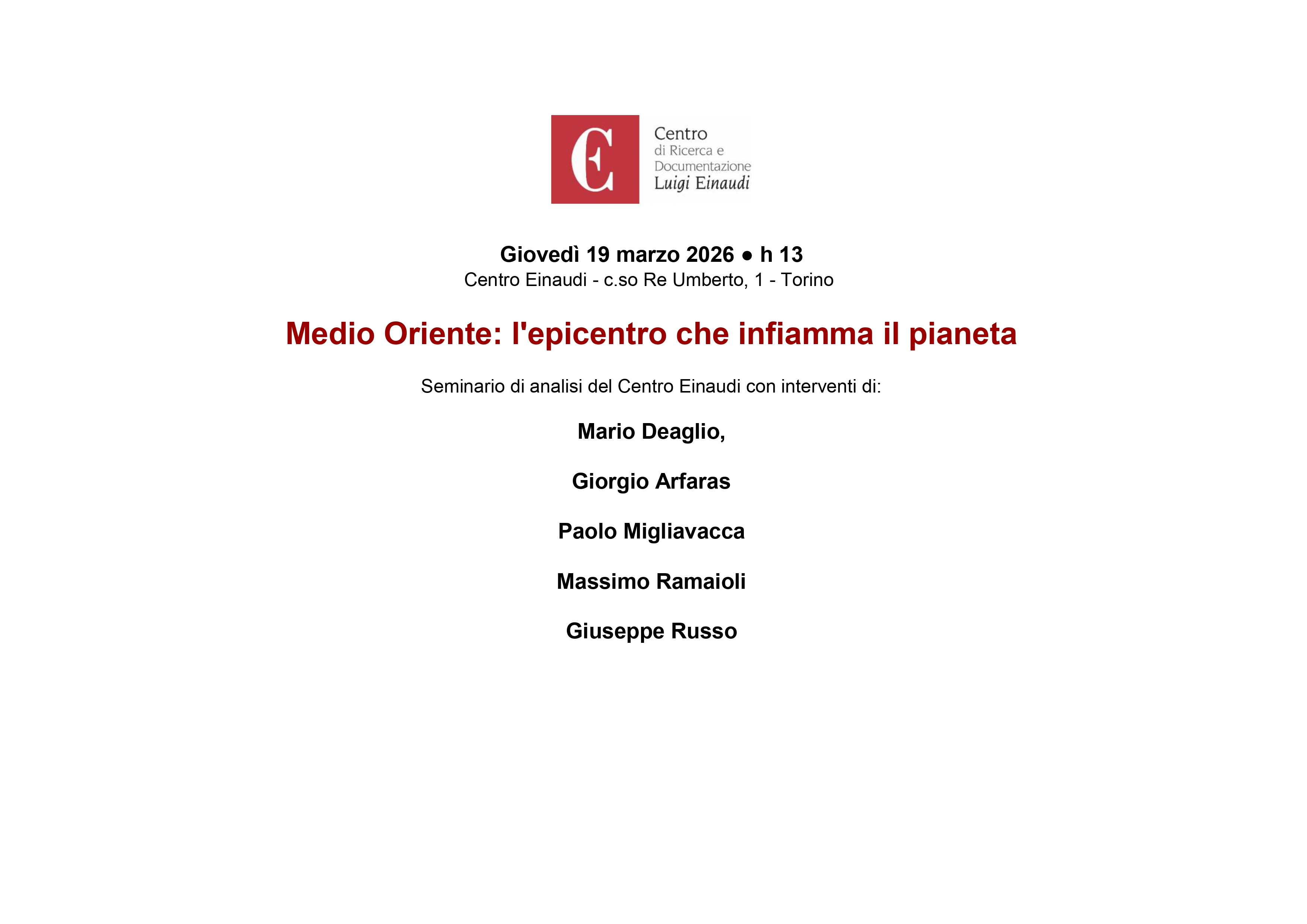 Video del seminario di analisi del Centro Einaudi del 19 marzo 2026 con interventi di:
